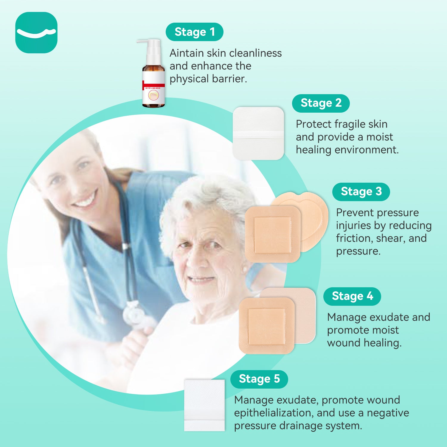 Stage 2 - Hydrocolloid Dressings: Protect fragile skin and provide a moist healing environment.