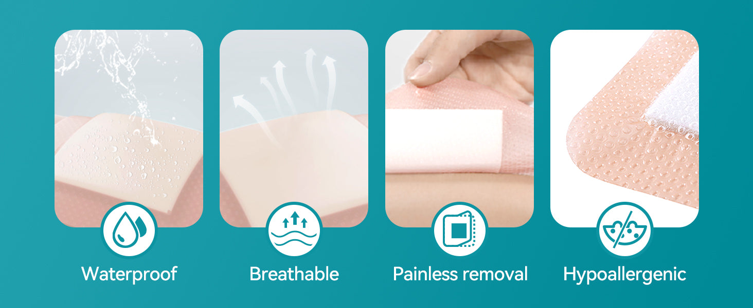 Upgraded Ultra-Soft Silicone Foam for Lasting Comfort - Our foam dressing feature 2mm ultra-soft foam to provide better cushioning and protection for the wound site. Gentle silicone is designed for sensitive, aging skin, which minimizes pain and trauma during dressing changes.