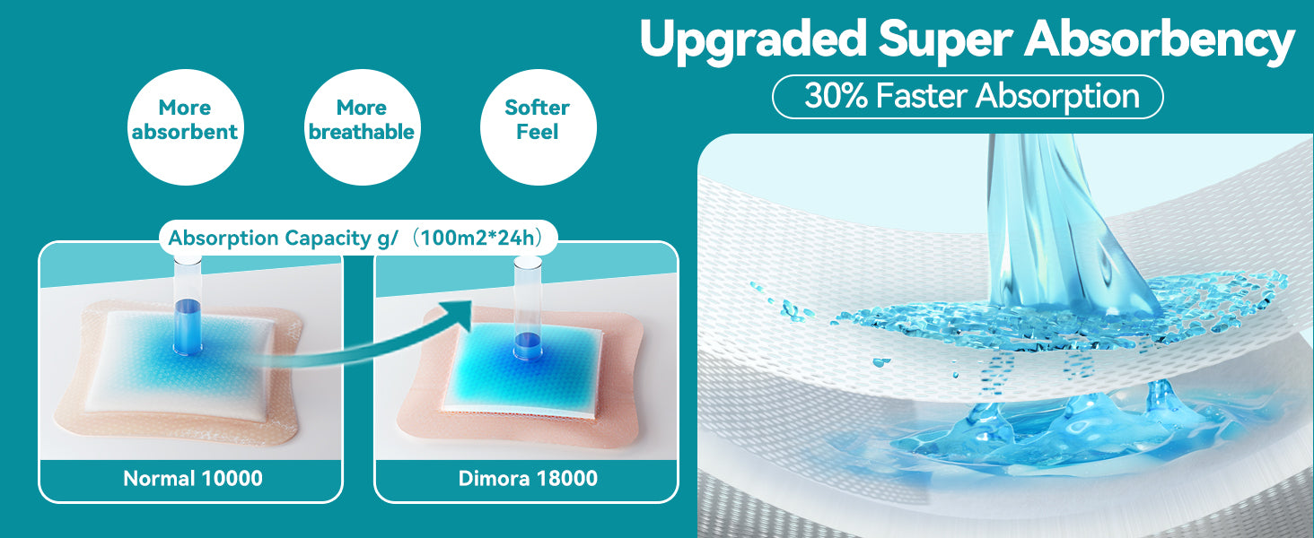 Provides a Moist Healing Environment - Ultra soft wound bandage offer effective absorbency and comfortable wound care, provides the optimal environment to promote healing. Dimora wound dressing is your ideal choice for wound care.