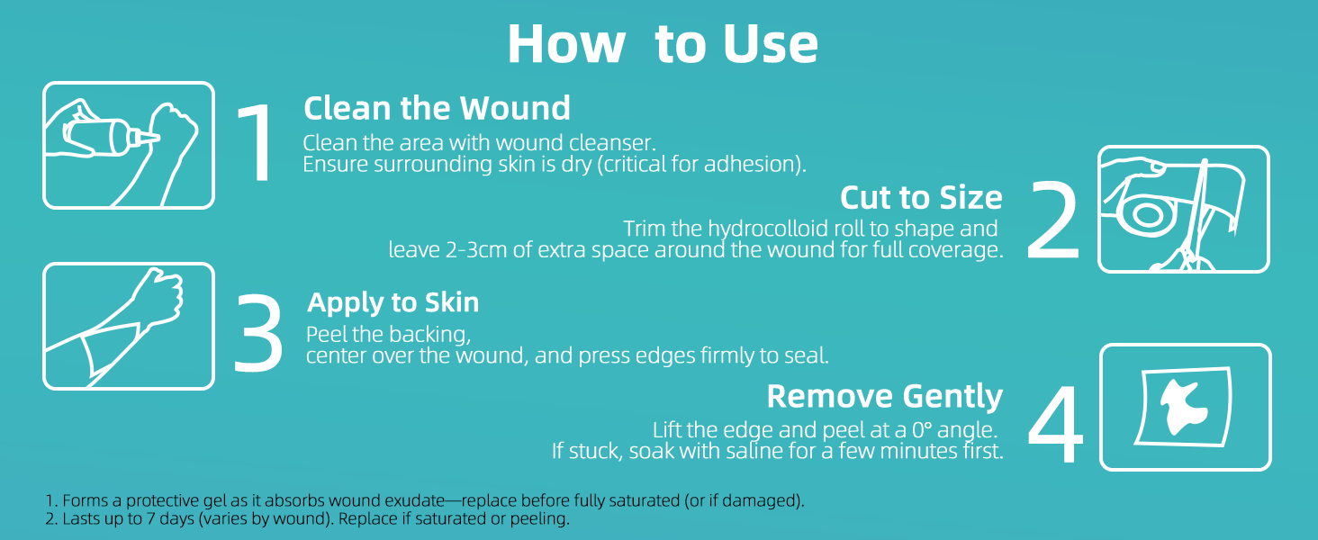 Promote Wound Healing: This hydrocolloid promotes faster healing by providing a moist wound environment, accelerating healing times by 2 to 3 times, drug-free pain relief. Apply to non to low-exuding wounds, such as burn, acute abrasions, postoperative wounds.